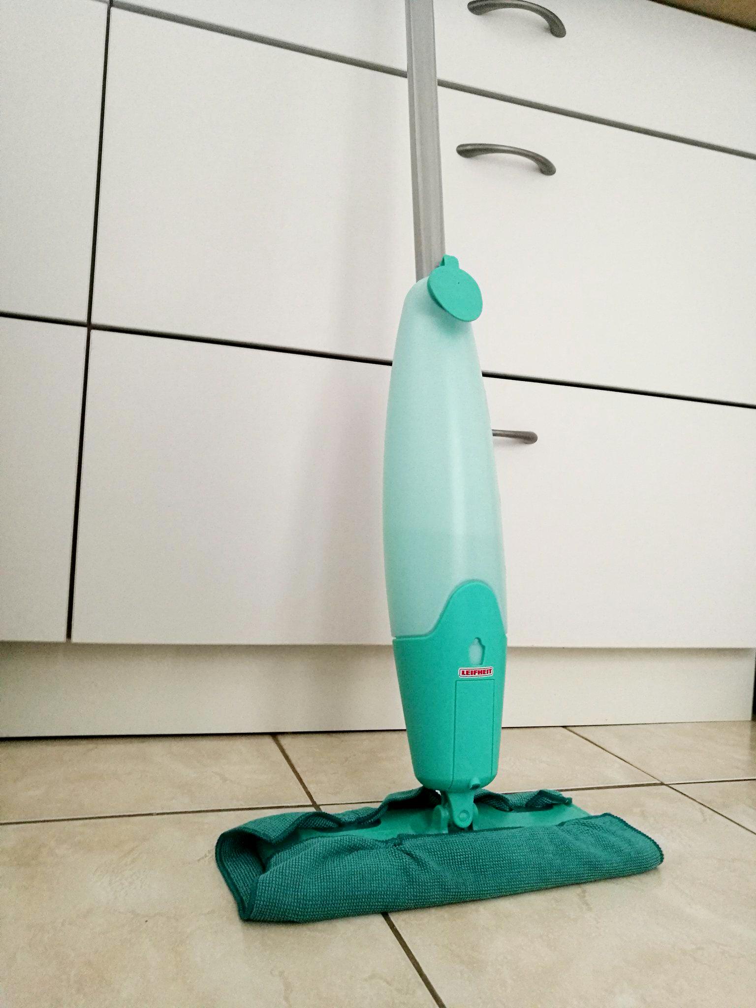 Sprzątanie zaczynamy od przetarcia szafek u góry gdzie zbiera się kurz oraz osad z tłuszczu. gdy gotujemy. Szafki wycieramy wodą z octem lub płynem do mycia naczyń ,to odtłuści powierzchnie. Po wytarciu możecie ułożyć tam papierowe ręczniki, które wchłoną w przyszłości tłuszcz. Potem myjemy fronty szafek i blaty, gdzie często zostawiamy “odciski palców”. Jeśli chodzi o podłogę oraz szybkie doprowadzenie jej do “stanu używalności” aby nic się nie kleiło i była po prostu czysta, to proponuję użycie praktycznego mopa. Ja do tego celu używam codziennie mojego sprawdzonego mopa Pico Spray firmy Leifheit, który oprócz szczotki, ściereczki, pod ręką, na drążku posiada zdejmowany i napełniany zbiornik do wody, który obsługuje się na uchwycie. Wystarczy uruchomić dźwignię, aby mop Pico Spray rozpylił strumień czystej wody lub indywidualnie przygotowany środek do mycia. Dzięki temu jest idealnym mopem do szybkiego mycia tu i ówdzie 🙂 W mojej kuchni,przedpokoju,łazience sprawdza się za każdym razem.